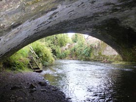 View of beer garden from underneath aquaduct
